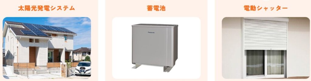 ・蓄電池:昼間に蓄えた電気を夜や停電時に活用できる安心の設備